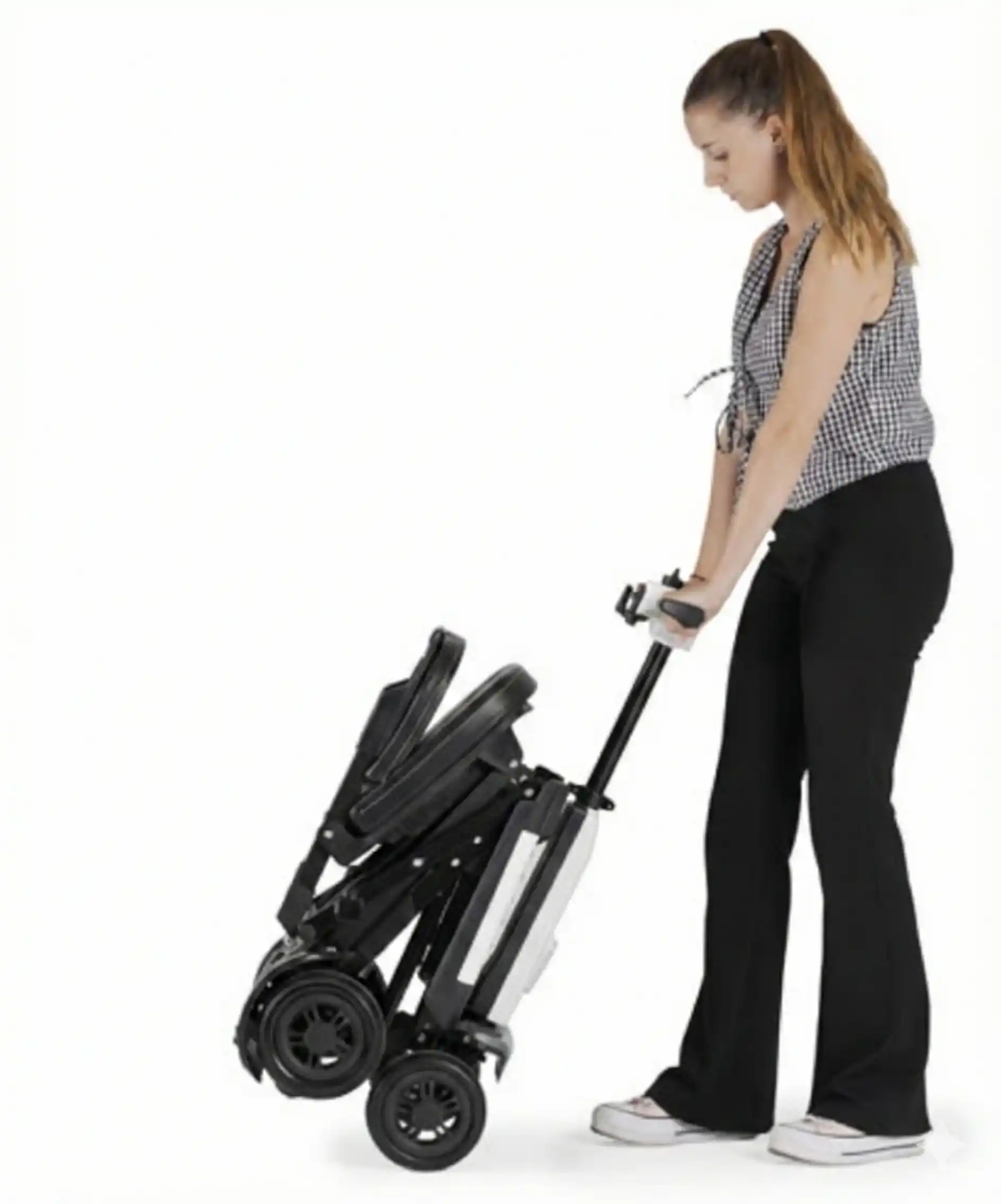La seva bateria de liti redueix el pes total a només 25 kg, facilitant-ne el transport i la manipulació. A més, es pot desplaçar com un trolley quan està plegada, fet que la converteix en l’opció ideal per a viatges, centres comercials o desplaçaments urbans. Incorpora rodes anti-bolcada, llum LED davantera i múltiples accessoris que garanteixen seguretat, confort i autonomia en el dia a dia.