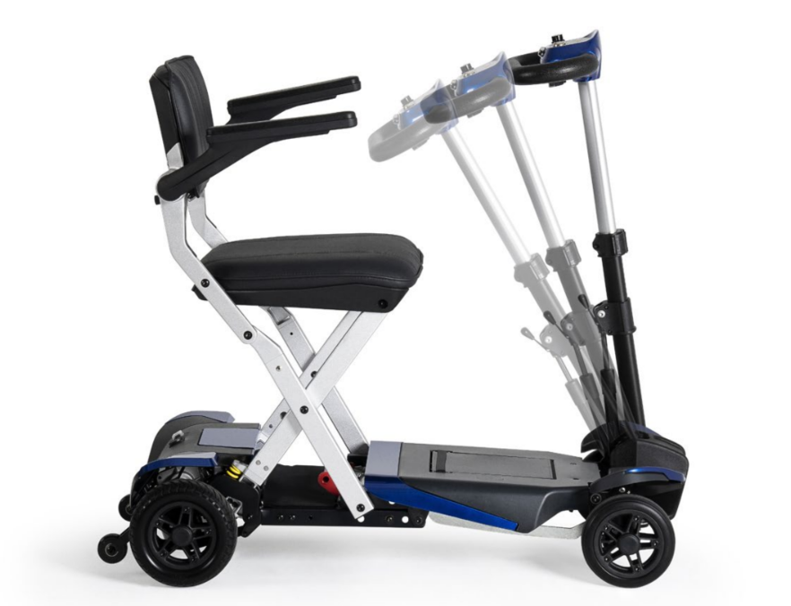 La I-Transformer és un scooter elèctric plegable automàtic, ideal per a espais reduïts. Es plega i es desplega elèctricament mitjançant comandament a distància i es pot transportar com un trolley un cop plegada.