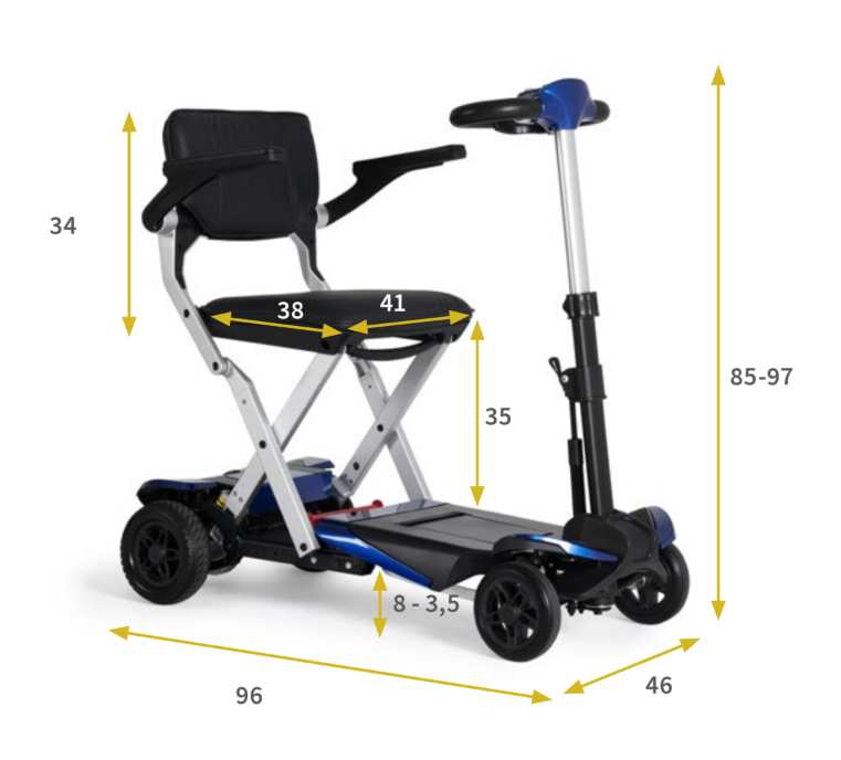 Incorpora amortiment posterior per a una conducció més còmoda, reposabraços abatibles i una estructura compacta que la converteix en una solució ideal tant per a l’ús urbà com per als viatges.