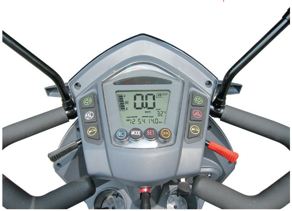 A més, inclou de sèrie un complet equipament premium, amb retrovisors, cinturons de seguretat, portagots, llums LED de baix consum i una pantalla LCD multifunció amb ordinador de bord, convertint-la en una solució de mobilitat elèctrica segura, fiable i totalment equipada.